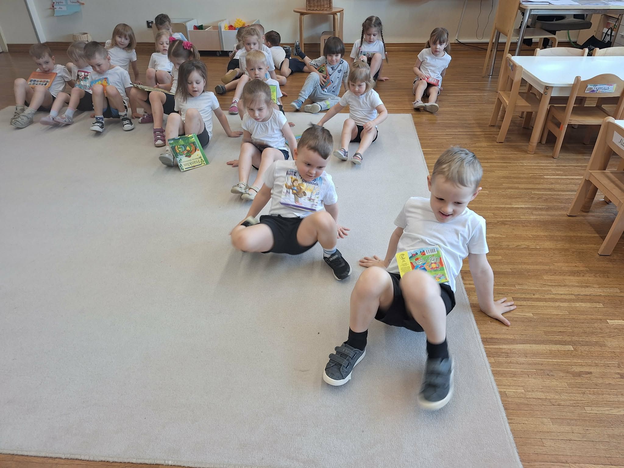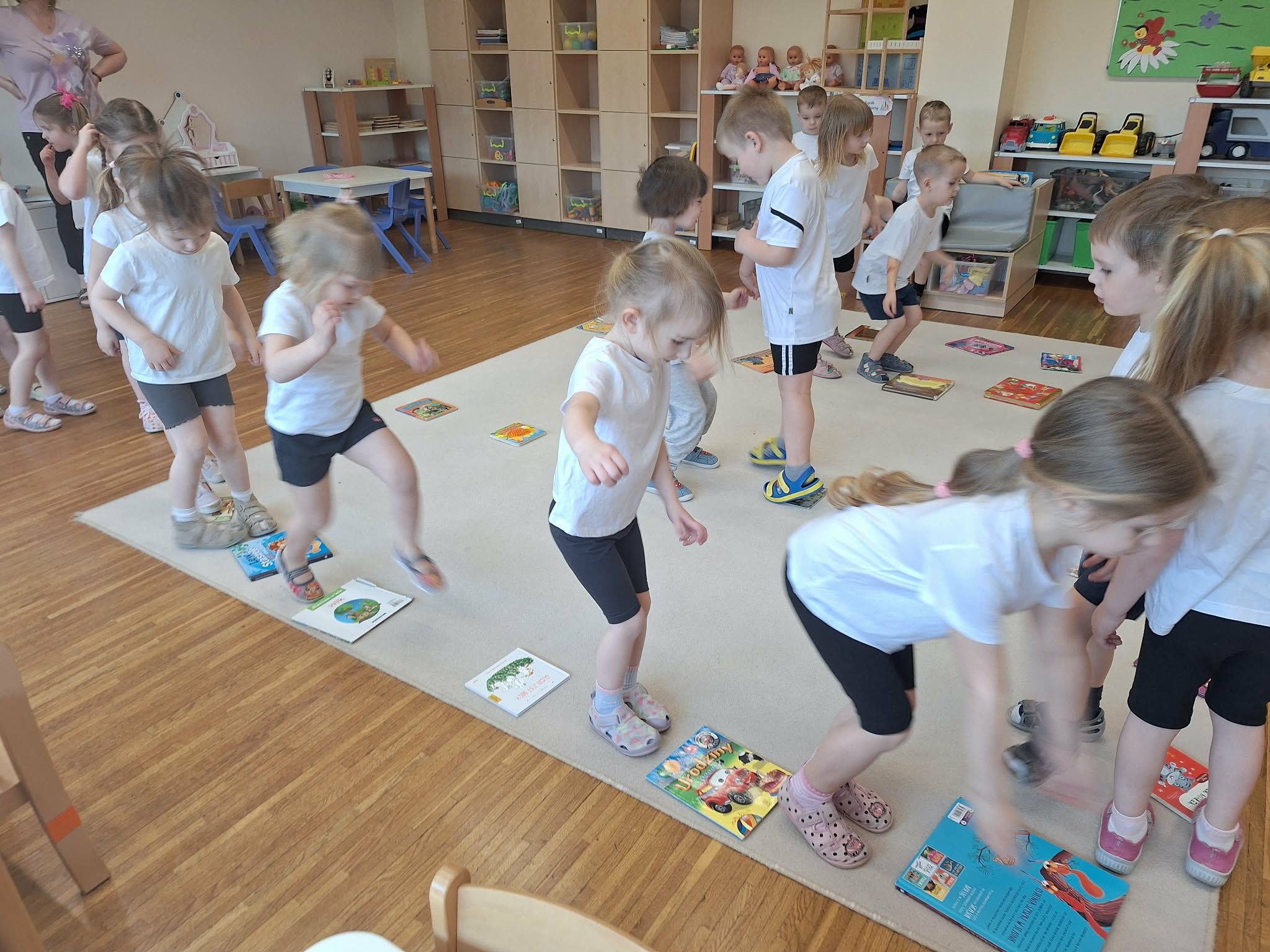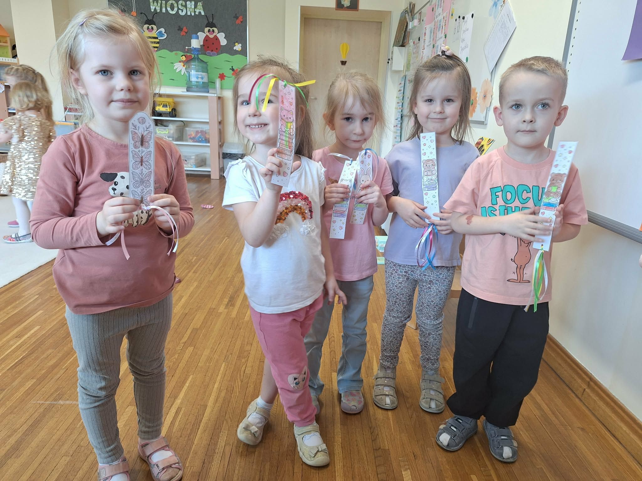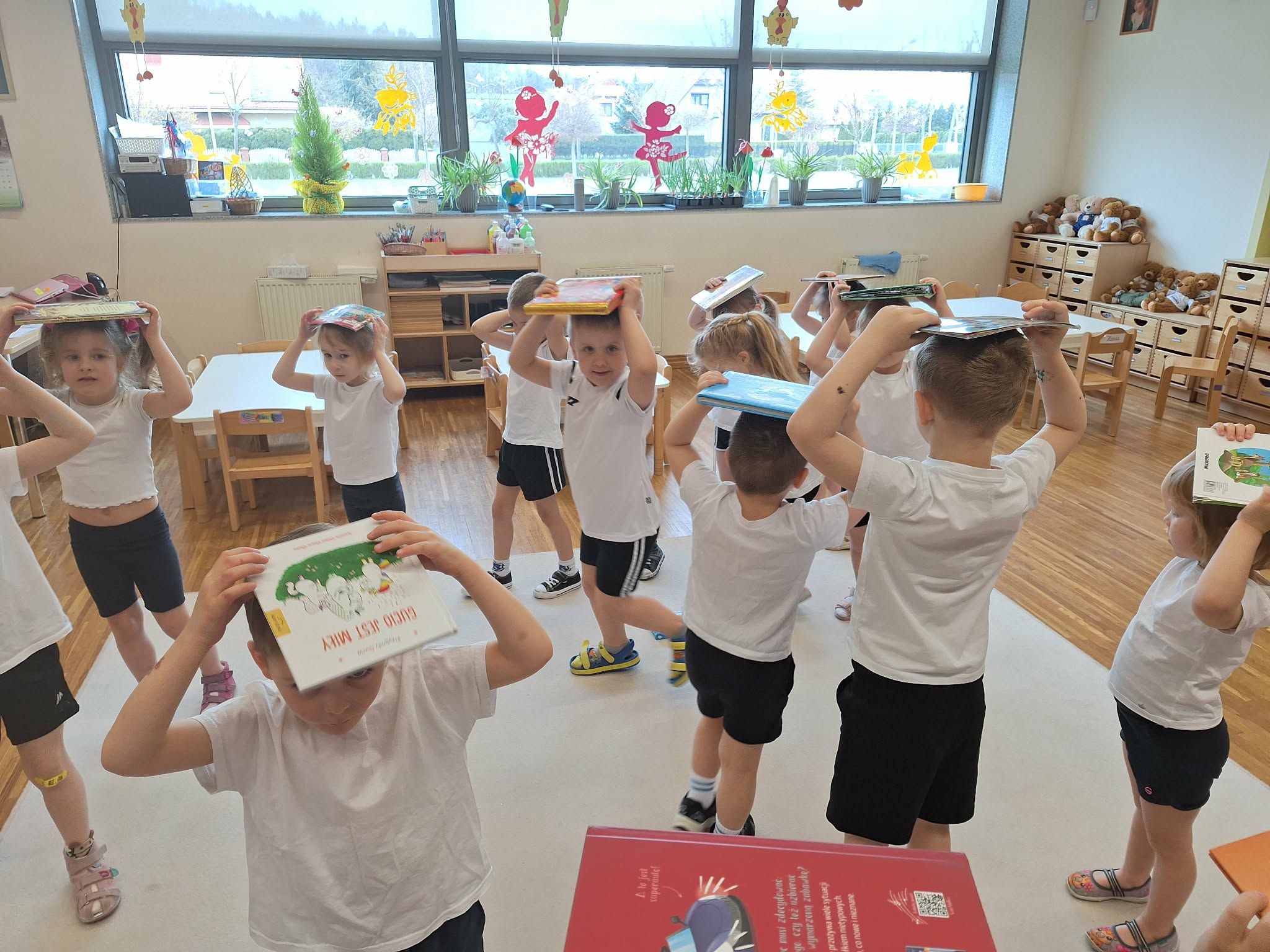 W tym tygodniu dzieci realizowały tematykę „Z książką za pan brat”, poznając świat książek w różnorodny i angażujący sposób. Na początku wspólnie stworzyły „Kodeks czytelnika”, w którym ustaliły zasady szanowania książek i właściwego zachowania podczas czytania. Dzieci miały także okazję zaprezentować książki przyniesione z domu – opowiadały o swoich ulubionych bohaterach i dzieliły się wrażeniami z lektury, co rozwijało ich umiejętności wypowiadania się i budowało zainteresowanie czytelnictwem. W części plastycznej wykonały kolorowe zakładki do książek, rozwijając swoją kreatywność i sprawność manualną. Nawet podczas ćwiczeń gimnastycznych książki stały się elementem zabawy – dzieci wykorzystywały je w różnych aktywnościach ruchowych, łącząc naukę z ruchem. Na zakończenie tygodnia każde dziecko wzięło udział w tworzeniu wyjątkowej książki, w której samo stało się bohaterem. Było to podsumowanie zdobytej wiedzy i okazja do rozwijania wyobraźni oraz poczucia własnej wartości.