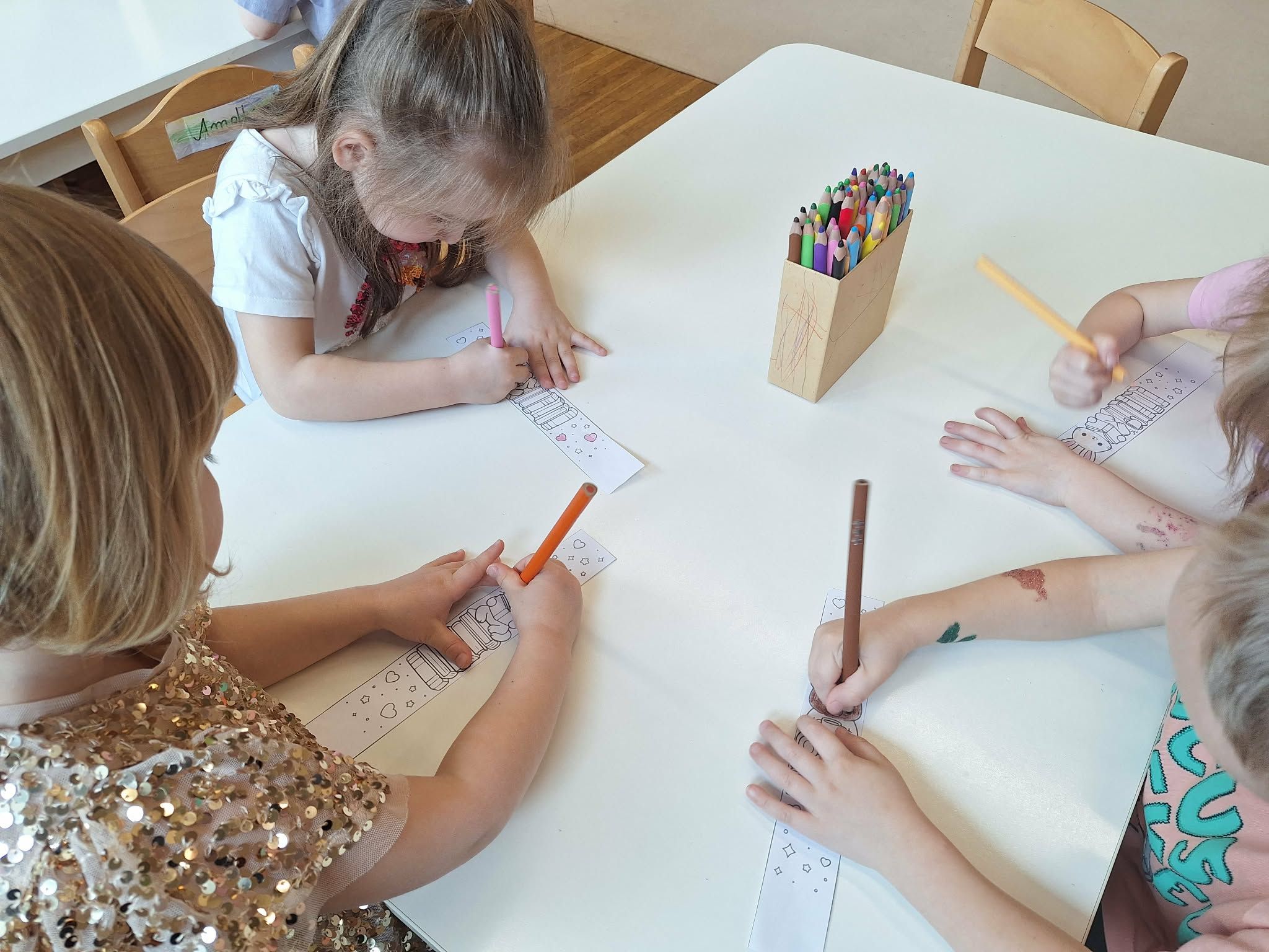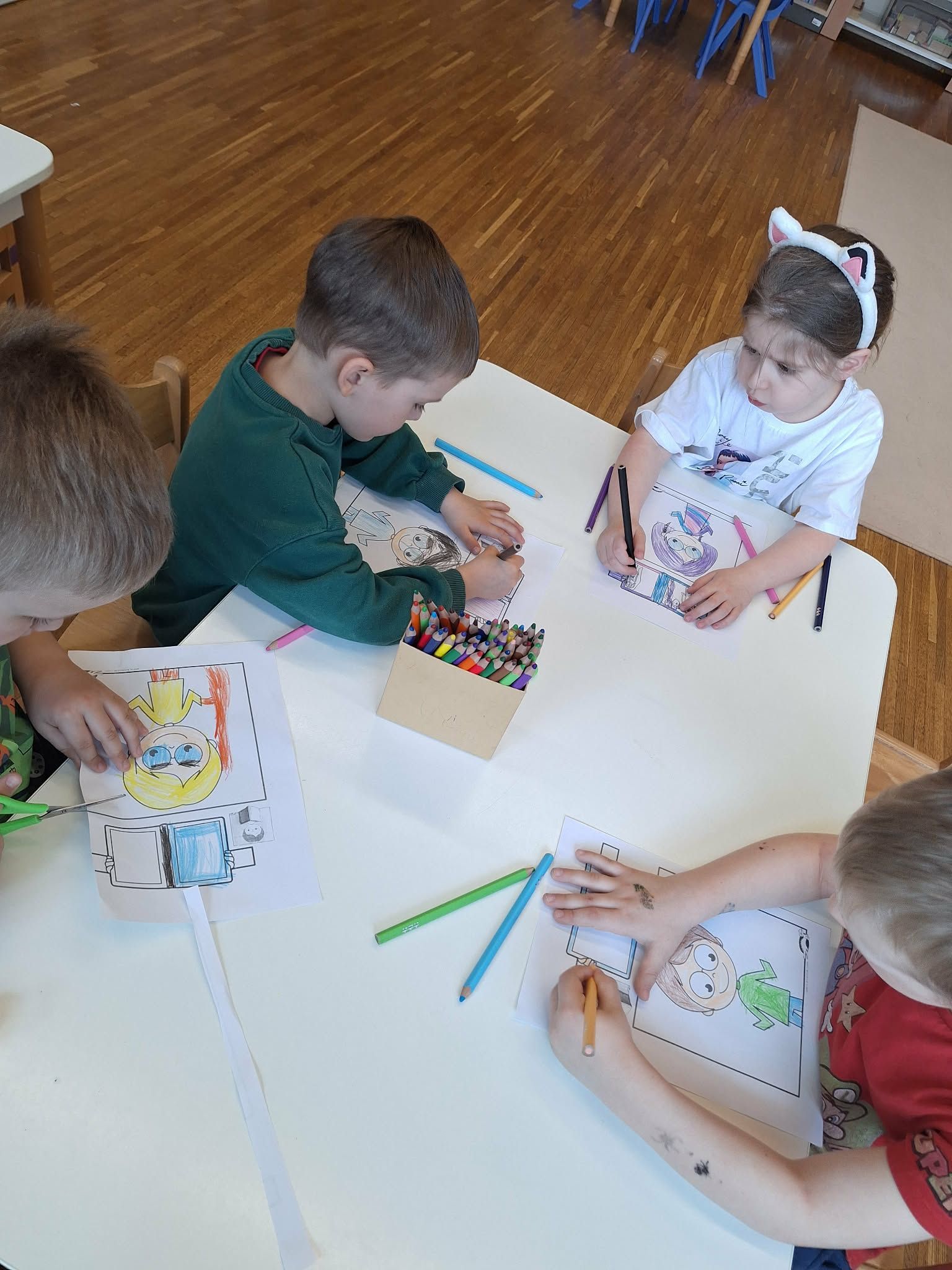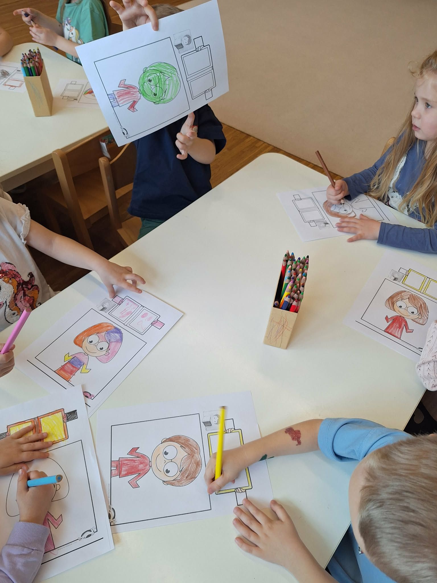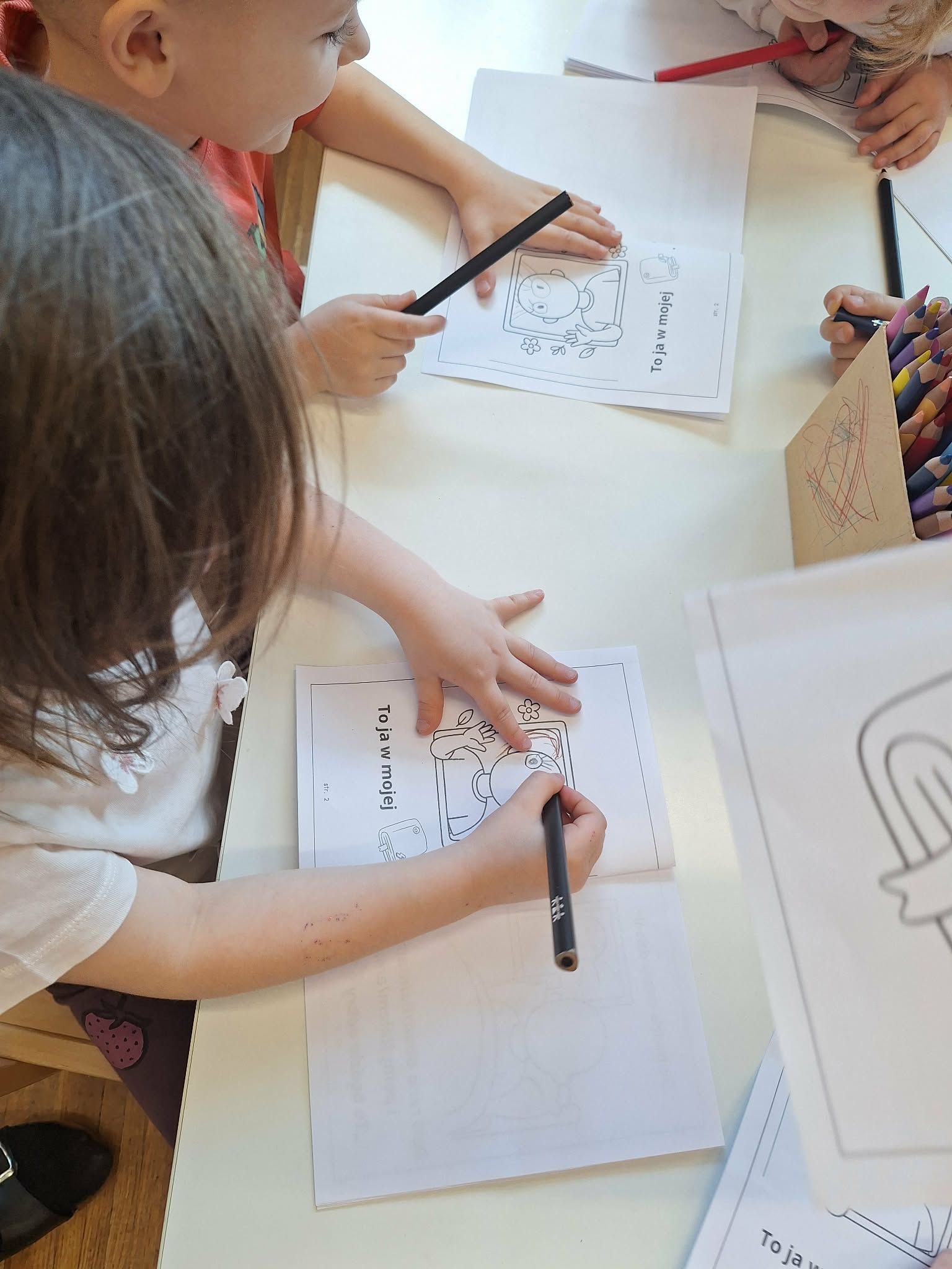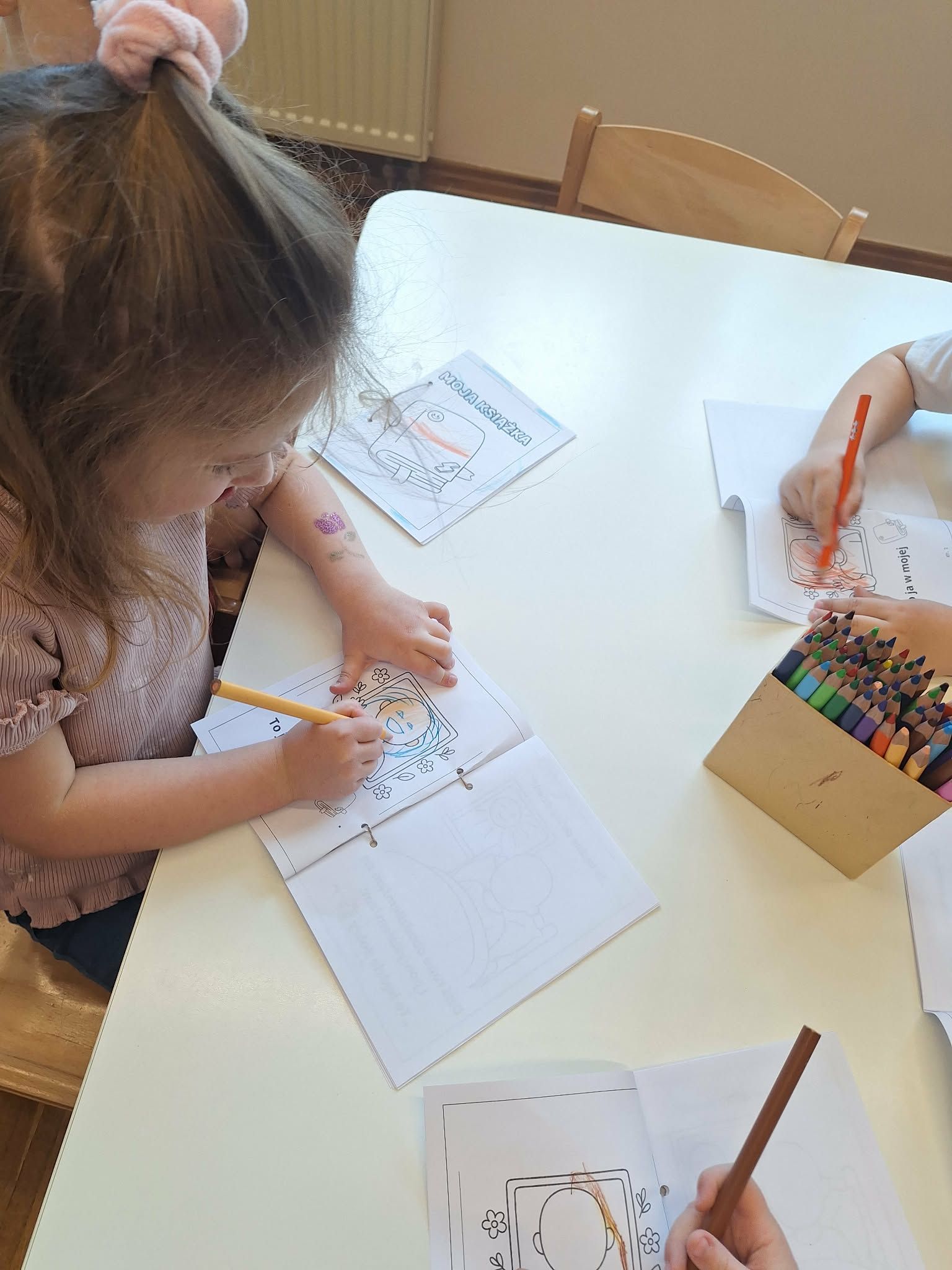 W tym tygodniu dzieci realizowały tematykę „Z książką za pan brat”, poznając świat książek w różnorodny i angażujący sposób. Na początku wspólnie stworzyły „Kodeks czytelnika”, w którym ustaliły zasady szanowania książek i właściwego zachowania podczas czytania. Dzieci miały także okazję zaprezentować książki przyniesione z domu – opowiadały o swoich ulubionych bohaterach i dzieliły się wrażeniami z lektury, co rozwijało ich umiejętności wypowiadania się i budowało zainteresowanie czytelnictwem. W części plastycznej wykonały kolorowe zakładki do książek, rozwijając swoją kreatywność i sprawność manualną. Nawet podczas ćwiczeń gimnastycznych książki stały się elementem zabawy – dzieci wykorzystywały je w różnych aktywnościach ruchowych, łącząc naukę z ruchem. Na zakończenie tygodnia każde dziecko wzięło udział w tworzeniu wyjątkowej książki, w której samo stało się bohaterem. Było to podsumowanie zdobytej wiedzy i okazja do rozwijania wyobraźni oraz poczucia własnej wartości.