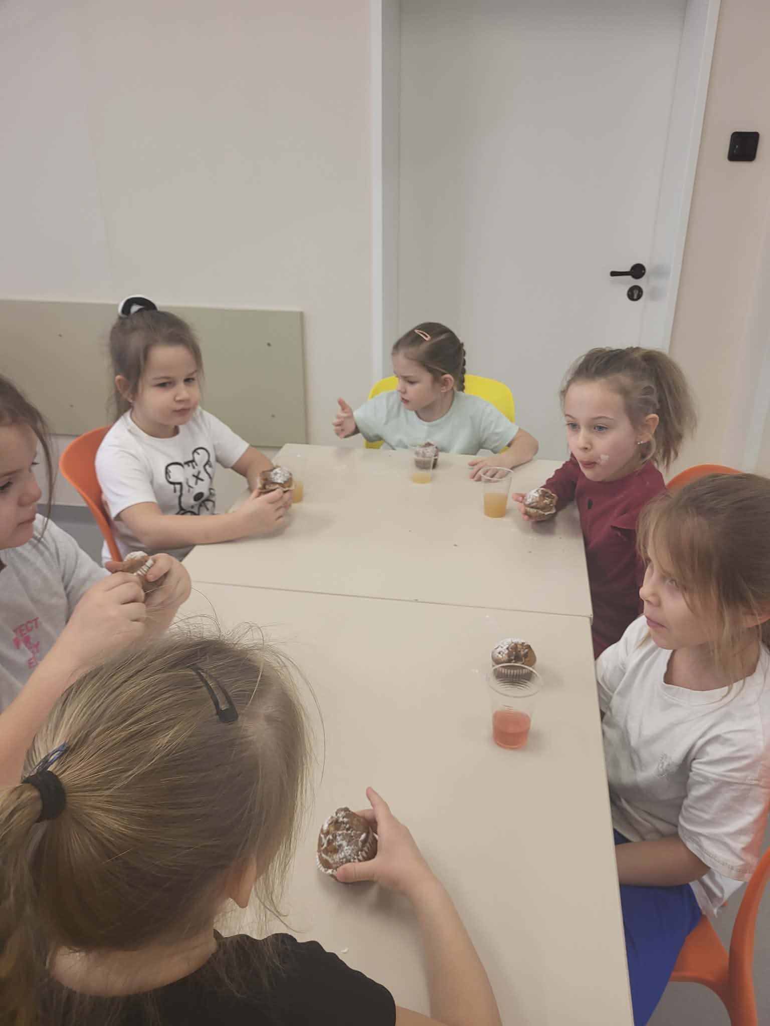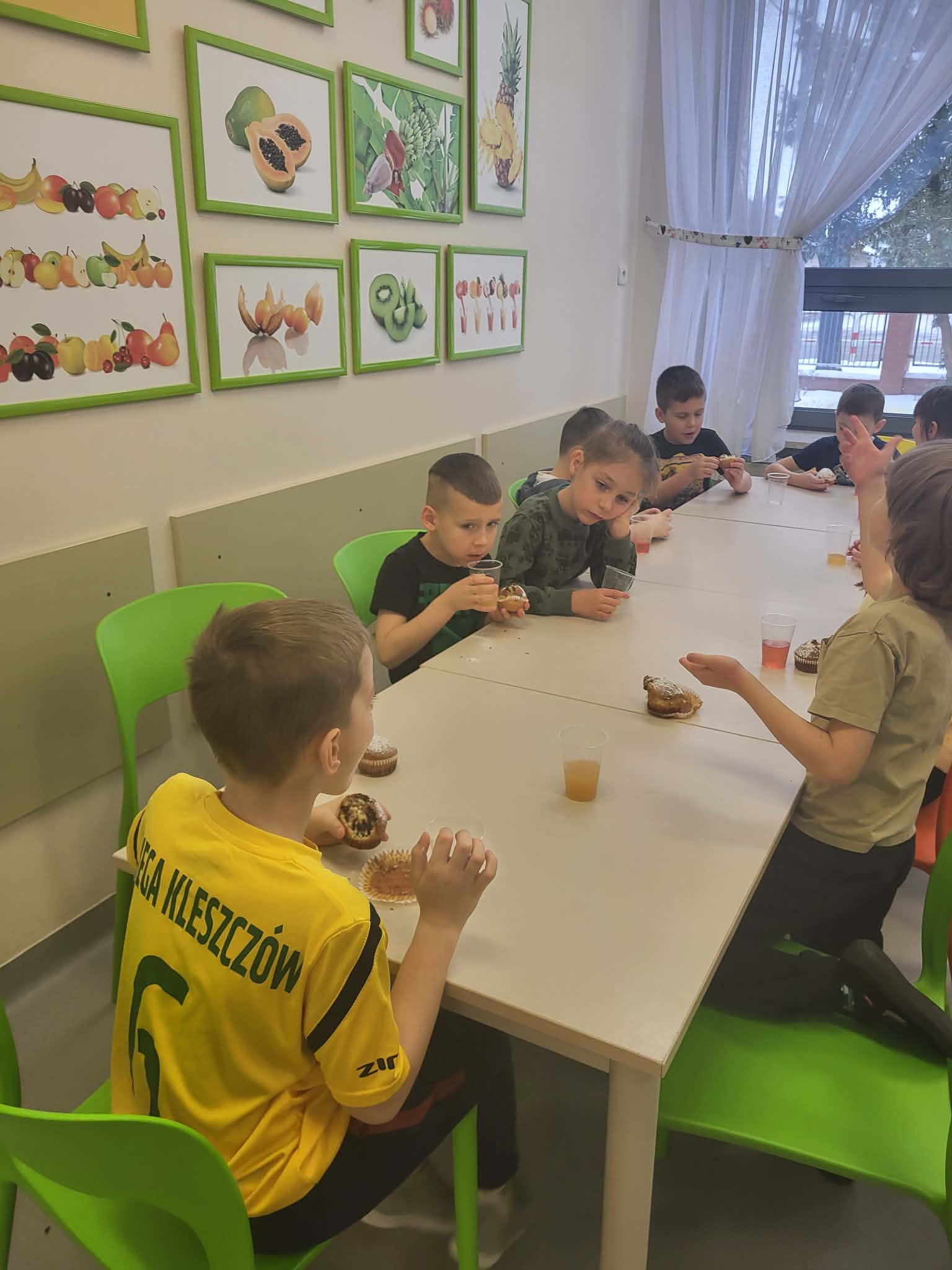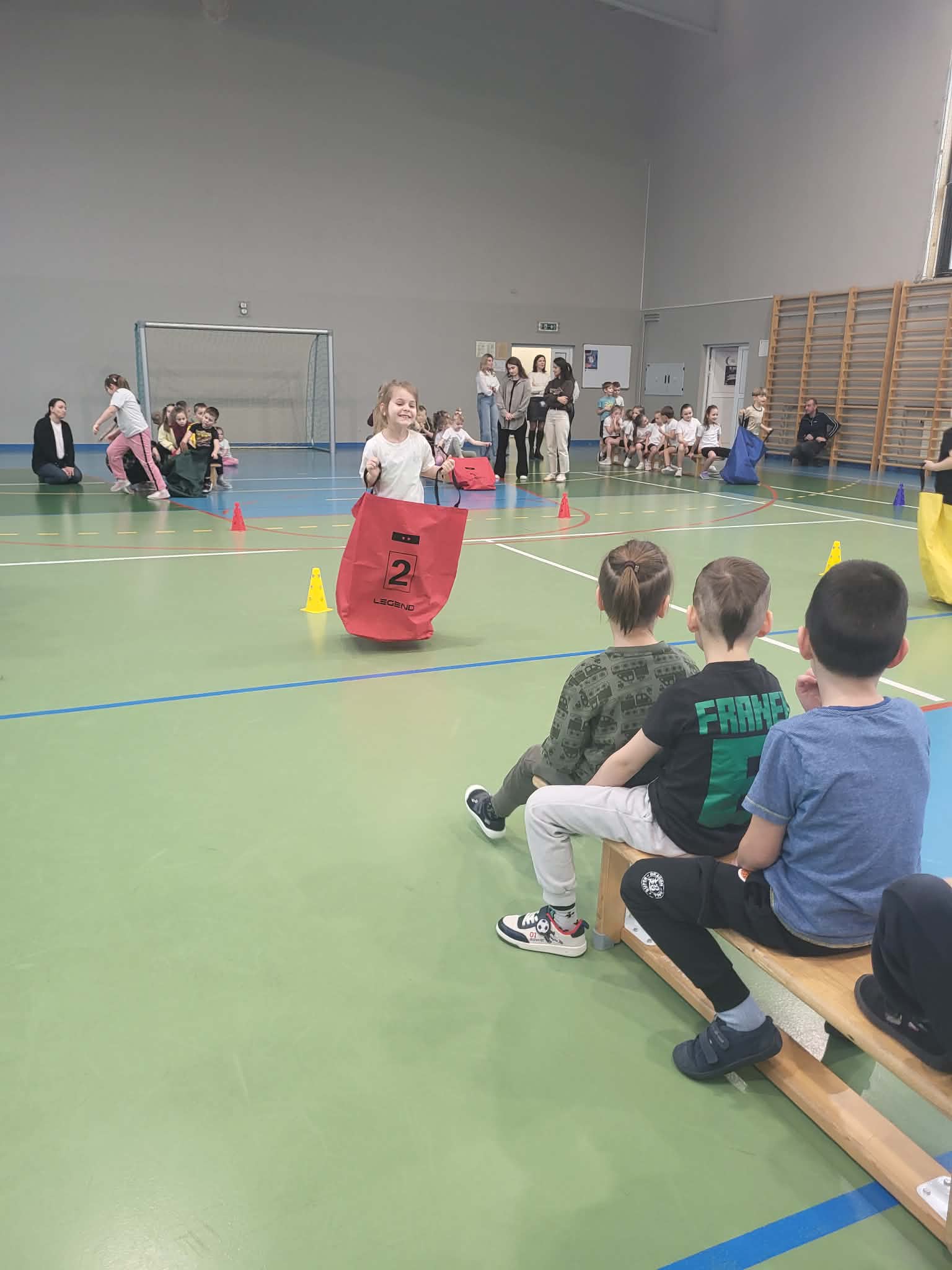 Po sportowych zmaganiach czekał na dzieci poczęstunek, a na zakończenie każdy uczestnik otrzymał upominek, co było miłym zwieńczeniem tego aktywnego i pełnego wrażeń dnia.
