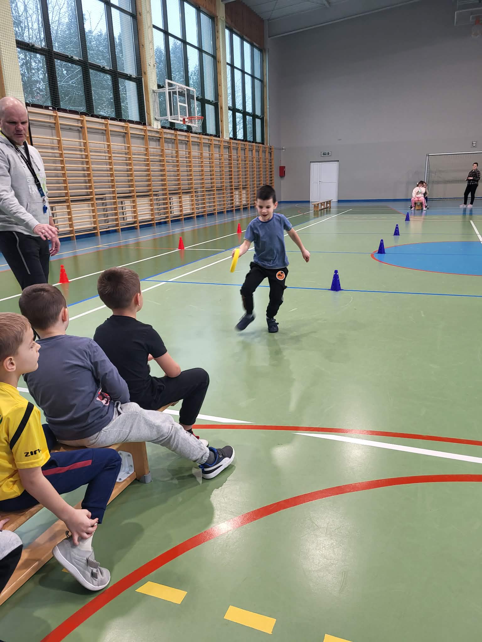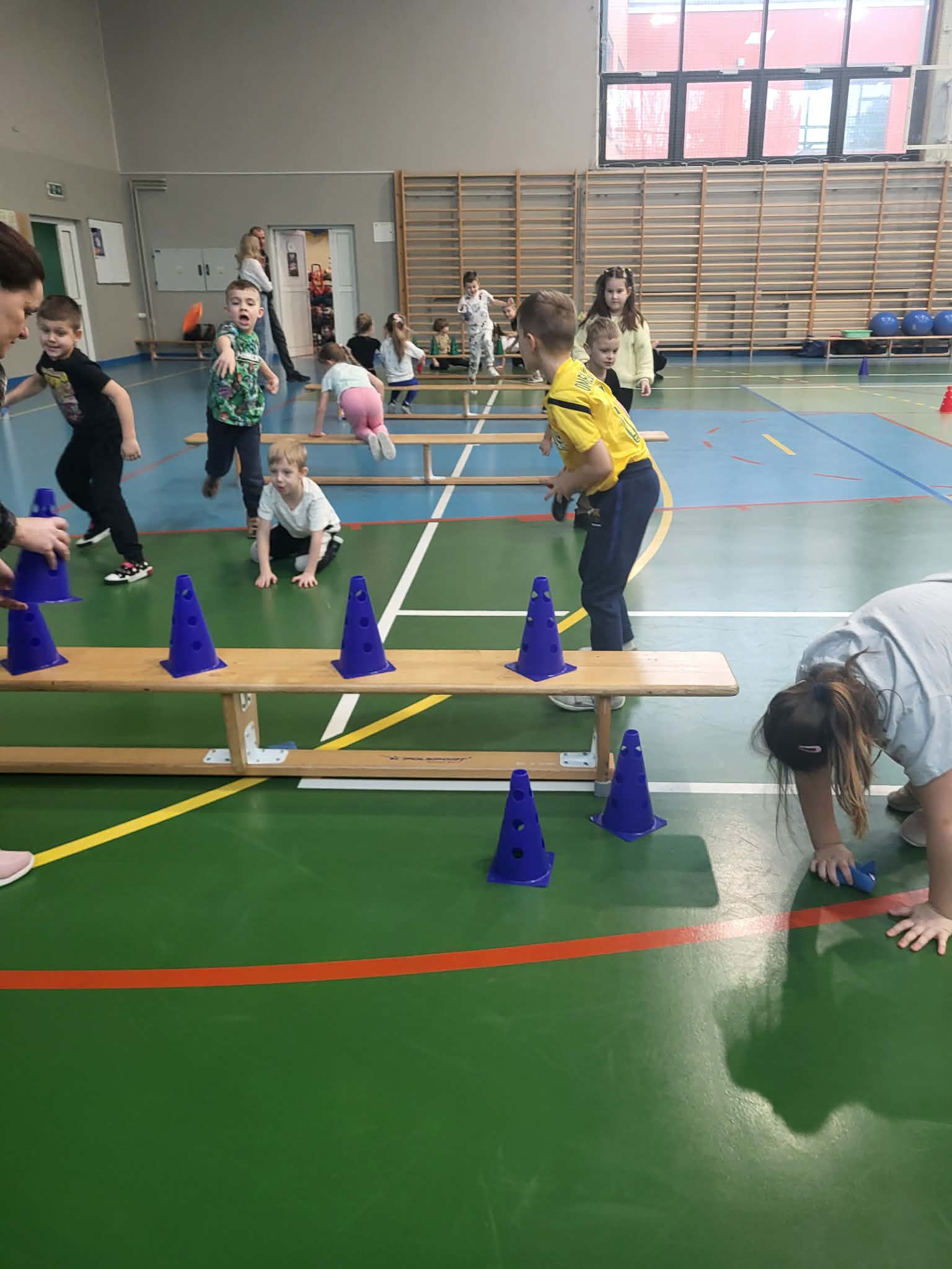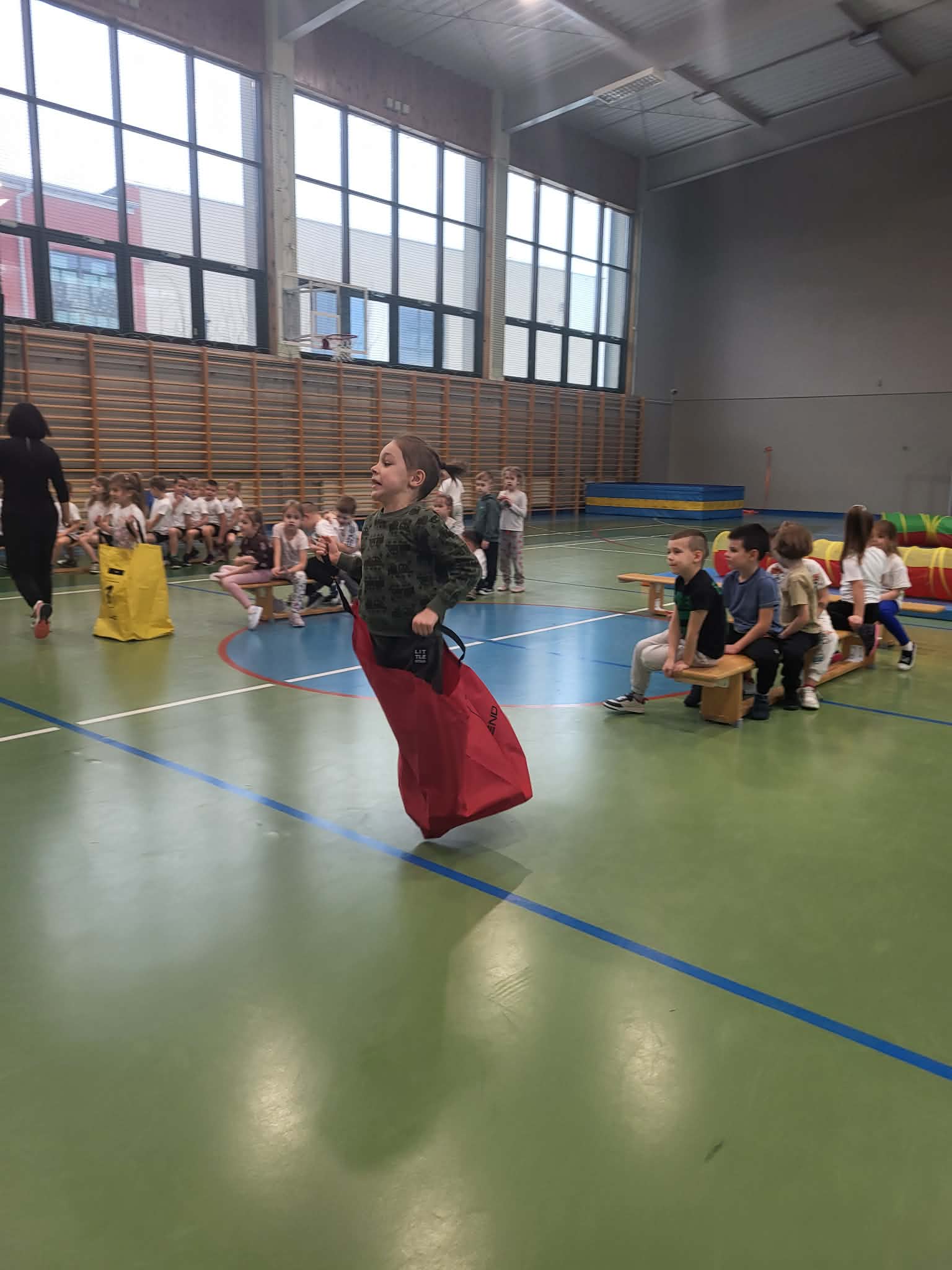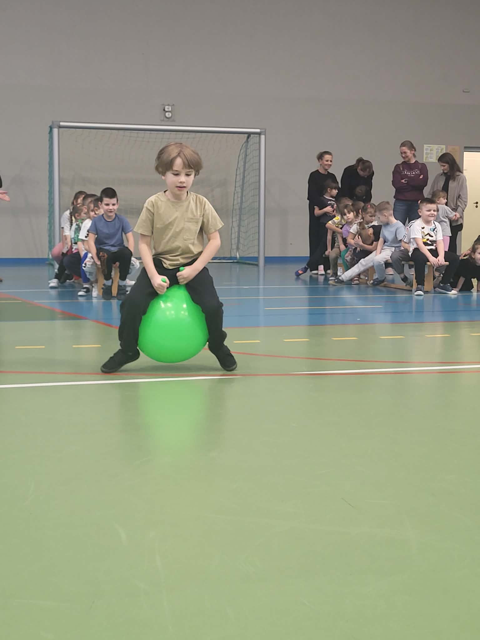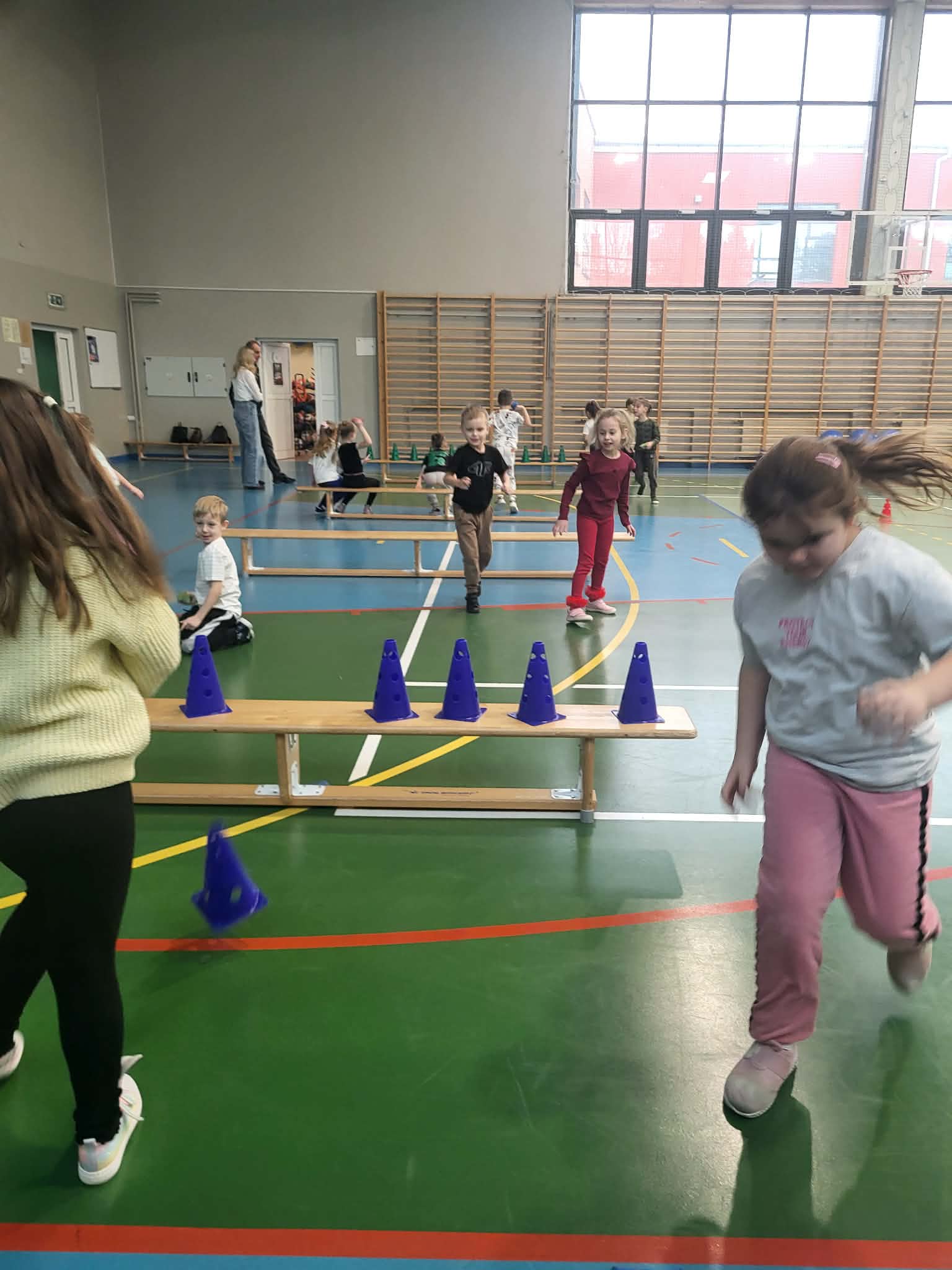 9 stycznia na zaproszenie Szkoły Podstawowej w Łękińsku wzięliśmy udział w Zimowych Igrzyskach Olimpijskich, organizowanych wspólnie dla dzieci 5- i 6-letnich oraz uczniów klas I. Dzieci brały udział w różnorodnych zabawach i konkurencjach sportowych, które z dużym zaangażowaniem prowadzili nauczyciele wychowania fizycznego. W programie znalazły się m.in. slalom, skoki w workach, toczenie piłki oraz inne zadania ruchowe rozwijające sprawność, koordynację i współpracę w grupie. Wszystkie konkurencje odbywały się w atmosferze radości, zdrowej rywalizacji i wzajemnego dopingu.