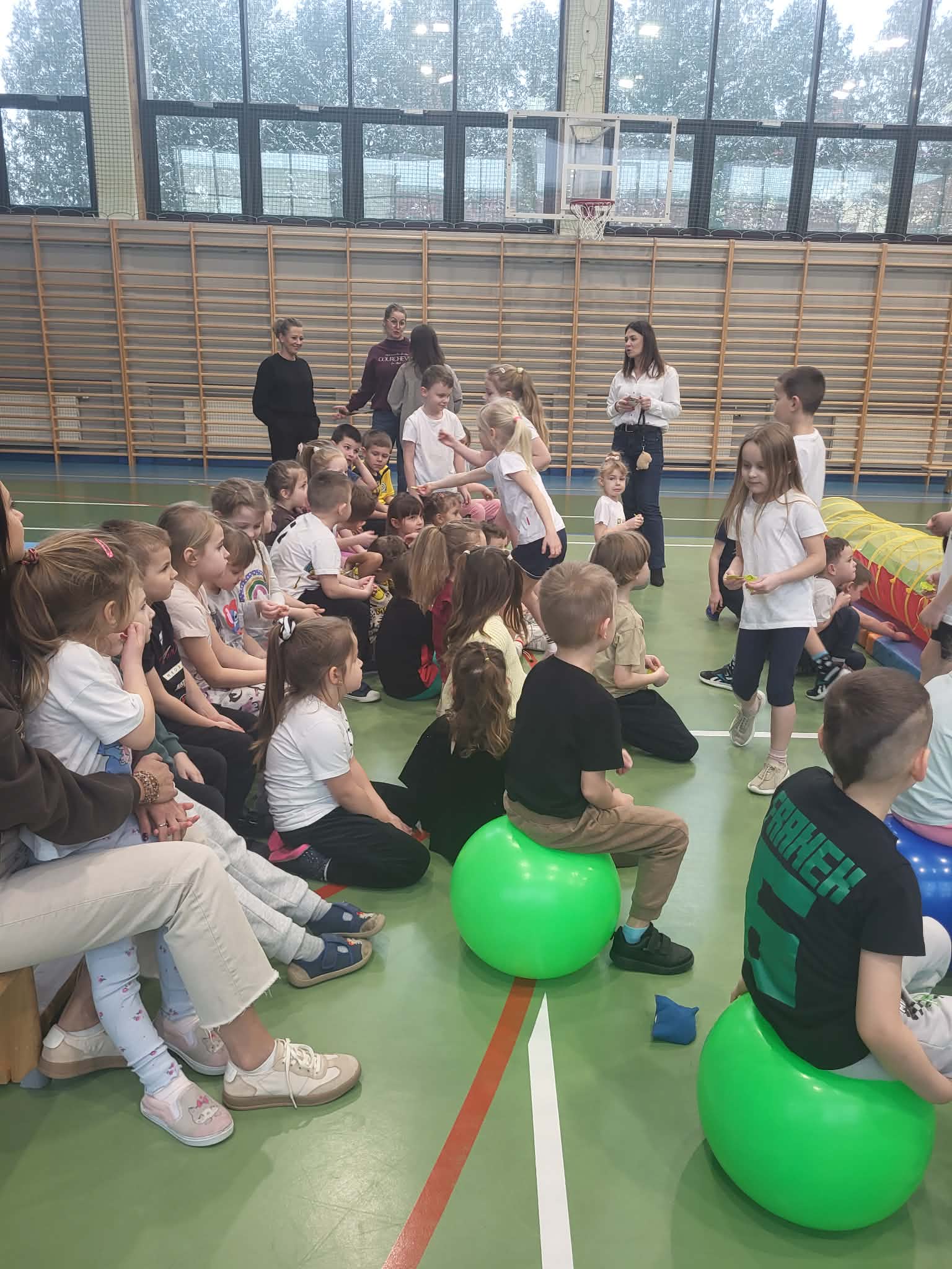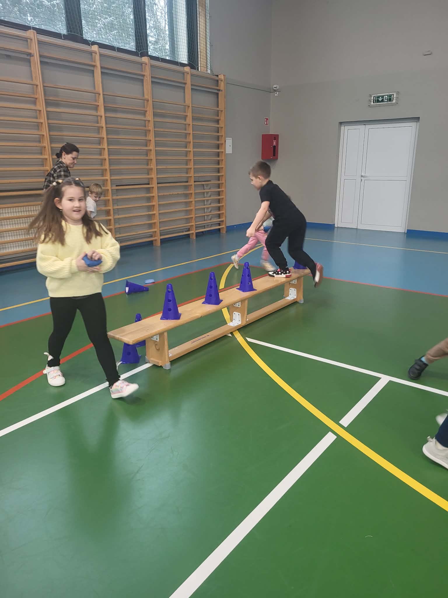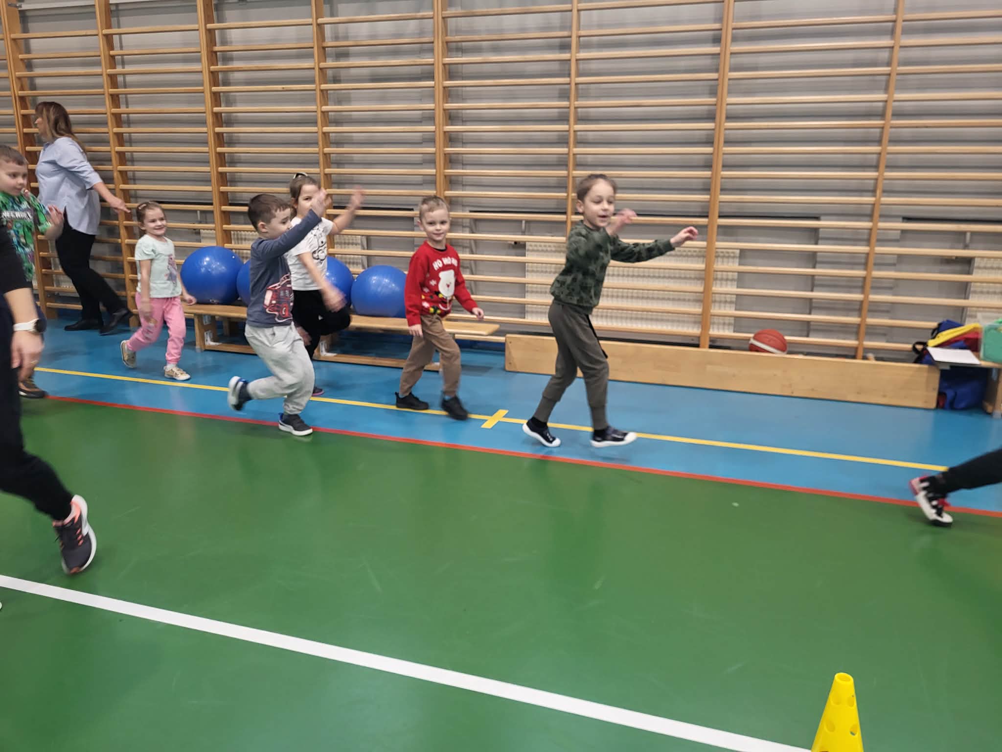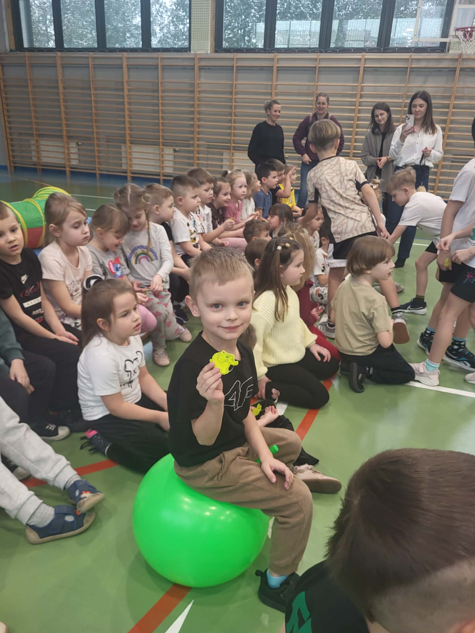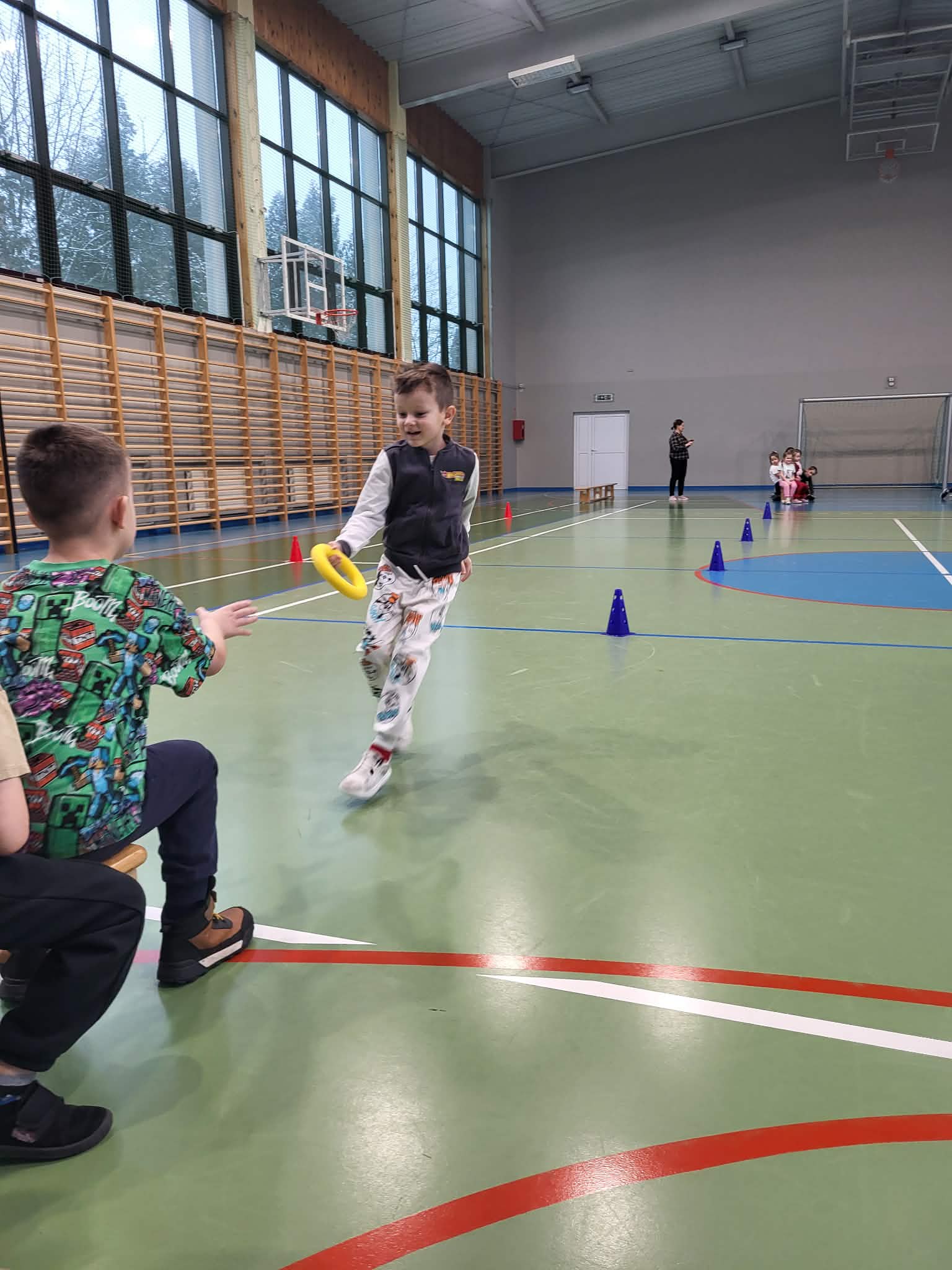 9 stycznia na zaproszenie Szkoły Podstawowej w Łękińsku wzięliśmy udział w Zimowych Igrzyskach Olimpijskich, organizowanych wspólnie dla dzieci 5- i 6-letnich oraz uczniów klas I. Dzieci brały udział w różnorodnych zabawach i konkurencjach sportowych, które z dużym zaangażowaniem prowadzili nauczyciele wychowania fizycznego. W programie znalazły się m.in. slalom, skoki w workach, toczenie piłki oraz inne zadania ruchowe rozwijające sprawność, koordynację i współpracę w grupie. Wszystkie konkurencje odbywały się w atmosferze radości, zdrowej rywalizacji i wzajemnego dopingu.